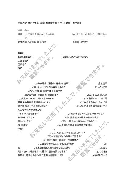 [2014][明星大学]児童・進路指導論 合格レポート 2単位目