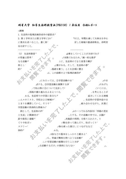 明星大学 初等生活科教育法(PB2150) 1単位目 合格レポート