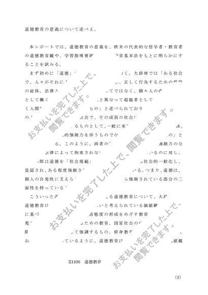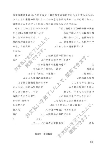 Z1106 道徳教育の研究 A判定