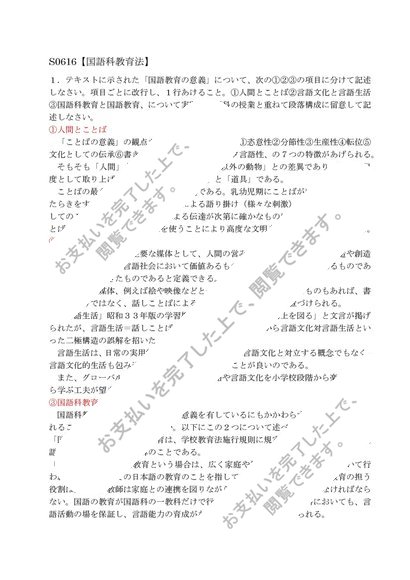 S0616 佛教大学 国語科教育法 試験対策 6設題と解答例 2014年度『85点合格済』