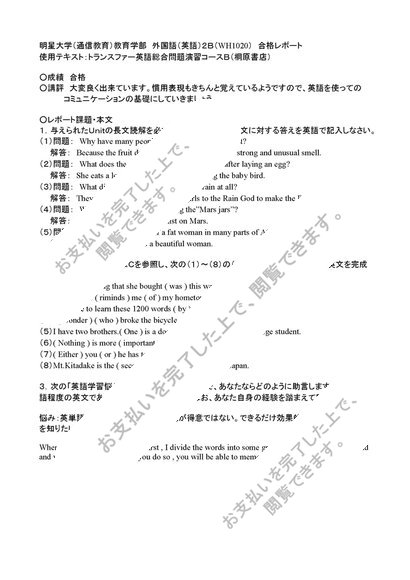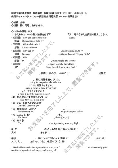 明星大学(通信教育)教育学部 外国語(英語)2A(WH1010)2B(WH1020) 合格レポート