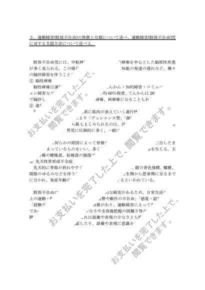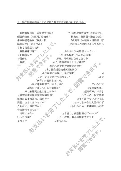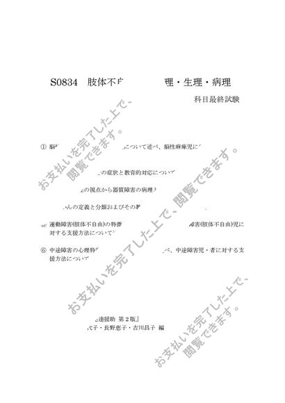 佛教大学 S0834肢体不自由児の心理・生理・病理 試験6題x解答