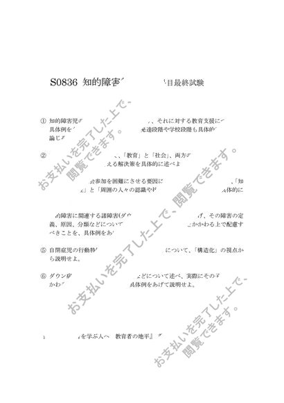 佛教大学 S0836知的障害教育Ⅰ 試験6題×解答