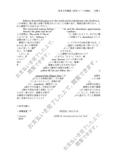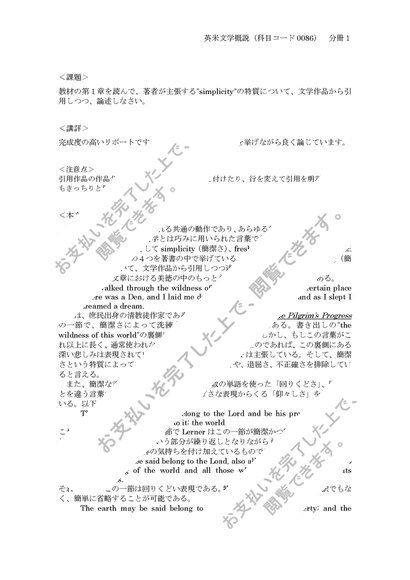 【日大通信】 英米文学概説 分冊1(高評価合格リポート)