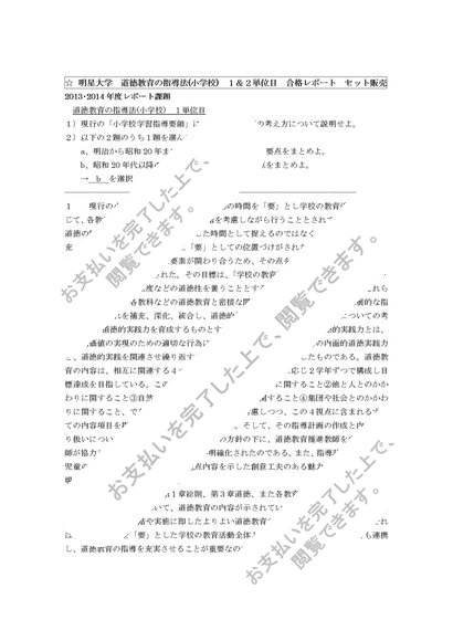 道徳教育の指導法(小学校)1・2単位 合格レポートセット