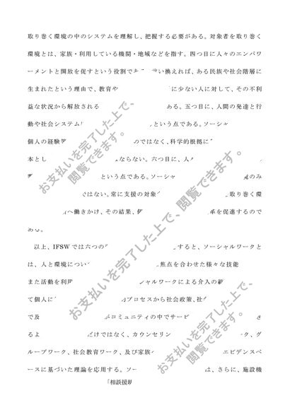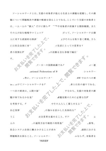 国際ソーシャルワーカー連盟の「ソーシャルワークの定義」を参考にソーシャルワークは何か、解説しなさい(A判定/1400字)