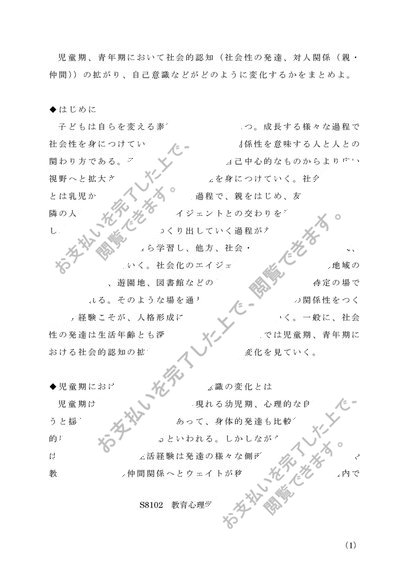 【A判定レポート】S8102_教育心理学1【2014】【佛教大学】