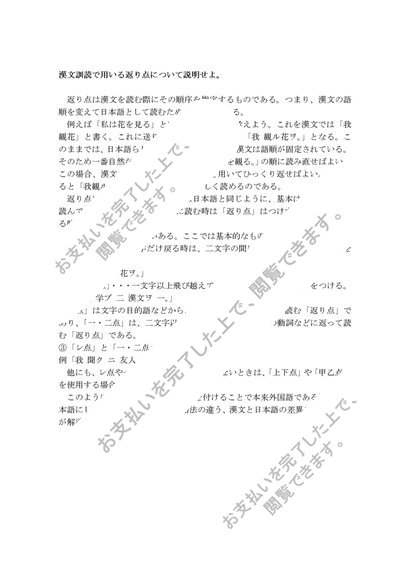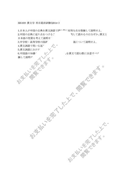 佛教大学 M6109,R0115 漢文学 科目最終試験 最新模範解答