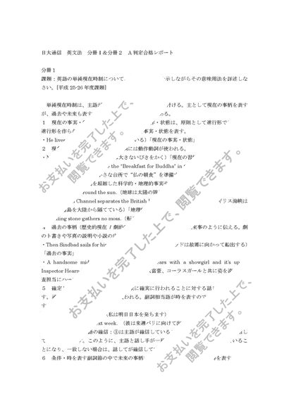 日大通信 英文法 分冊Ⅰと分冊2のセット A判定合格レポート