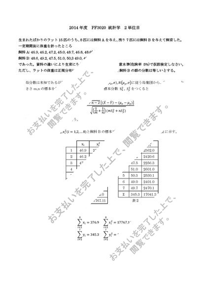 明星大学 PF3020 統計学 合格レポート(1,2単位目)