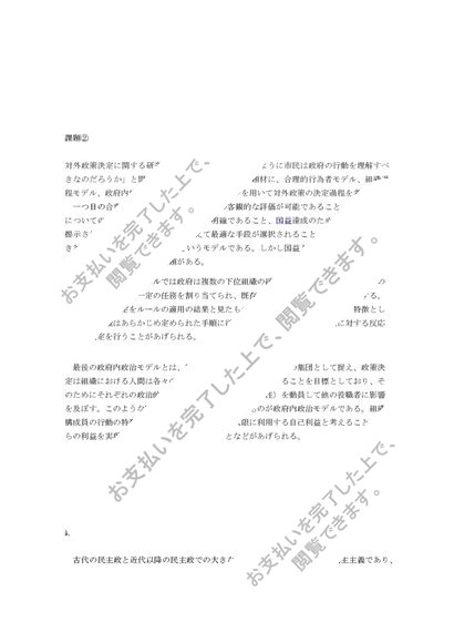 【2014】【明星大学】【政治学概論2】合格レポート(1.2単位目)