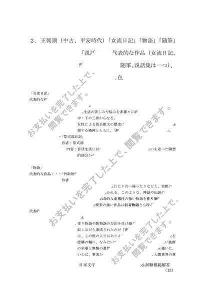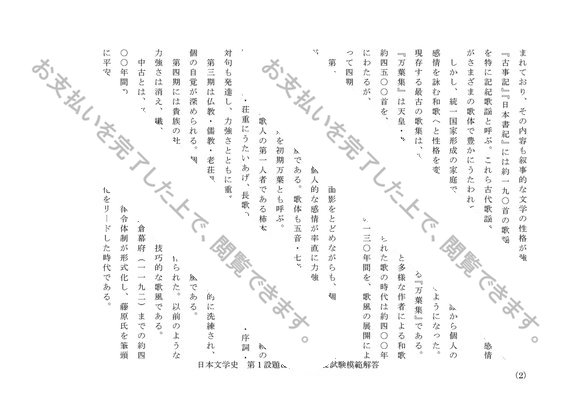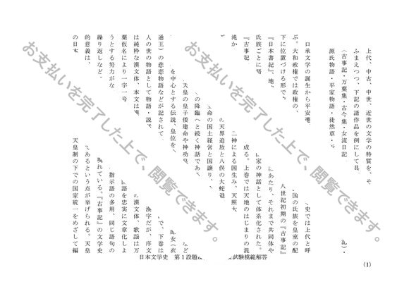 日本文学史 レポート第1設題&第2設題&科目最終試験模範解答セット M6105
