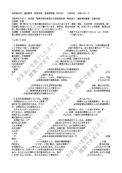 <2014年課題>明星大学 通信教育 教育学部 発達障害論(PA2130) 2単位目 合格レポート