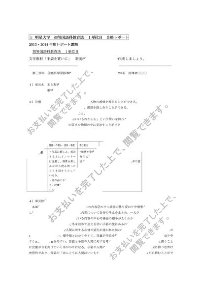 初等国語科教育法(書写を含む) 1単位目 合格レポート