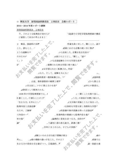 初等国語科教育法(書写を含む) 2単位目 合格レポート