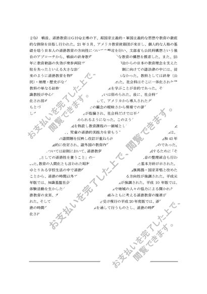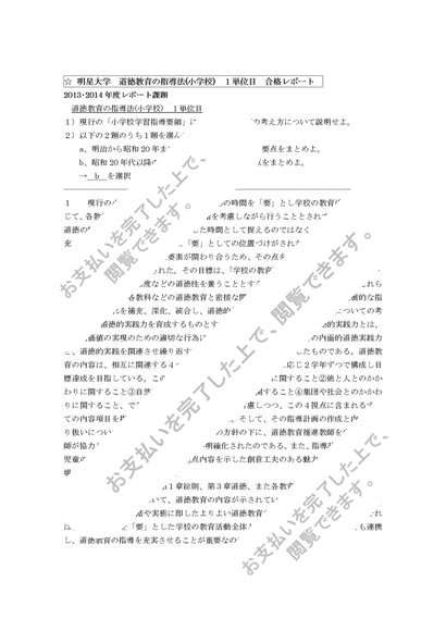 道徳教育の指導法(小学校)1単位 合格レポート
