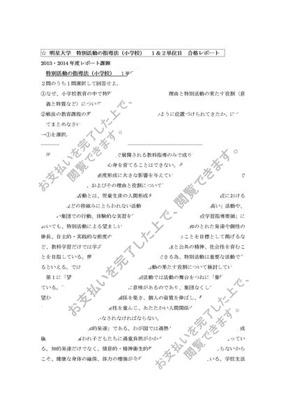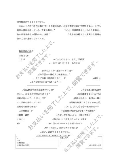 特別活動の指導法(小学校) 1&2単位 合格レポートセット