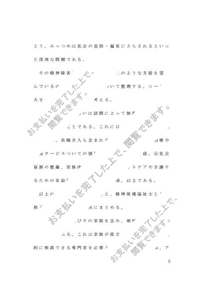 精神保健理論と相談援助の展開「家族が置かれている状況を整理しPSWが担うべき役割について考察しなさい」
