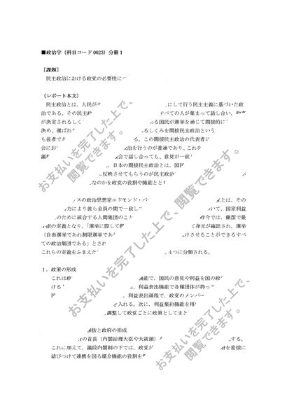 平成26、27年、日大通信、政治学(分冊1)、合格レポート