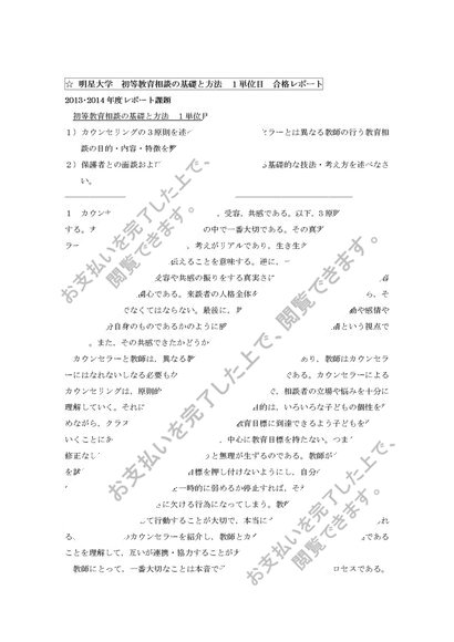 初等教育相談の基礎と方法 1単位目 合格レポート