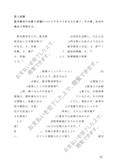 佛教大学 S0702 教科教育法数学1 レポート 第1設題&第2設題