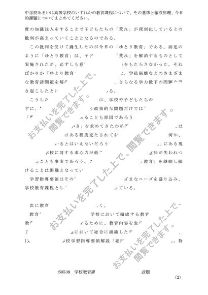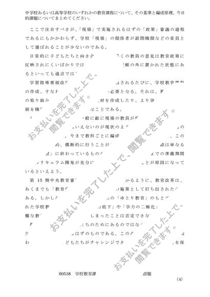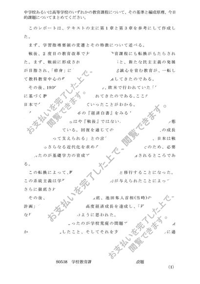 佛教大学 S0538 学校教育課程論(中・高) レポート 2015年
