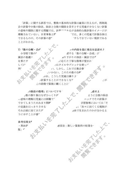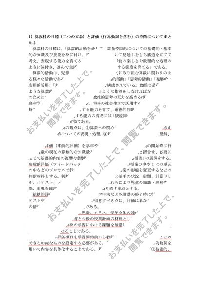 S0618算数科教育法科目最終試験解答一例85点
