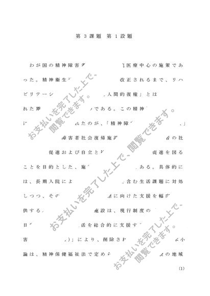 精神科リハビリテーション学 第3課題 評価B