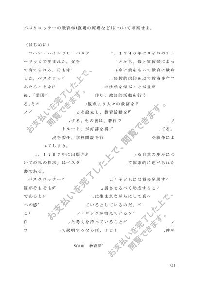 【2014年度】 A判定 S0101 教育原論 第1設題 レポート 佛教大学