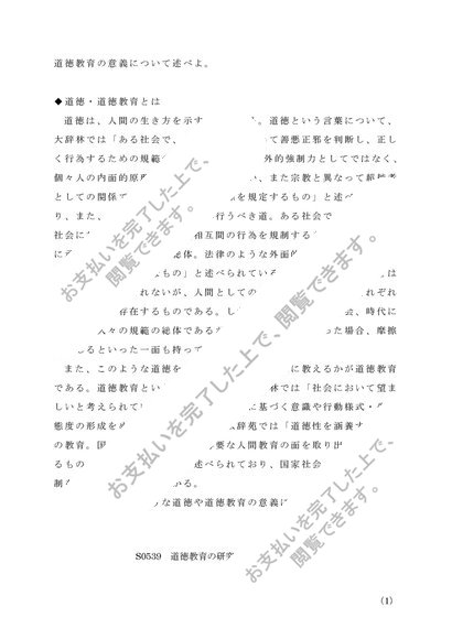 【A判定レポート】S0539_道徳教育の研究(中)【2014】【仏教大学】