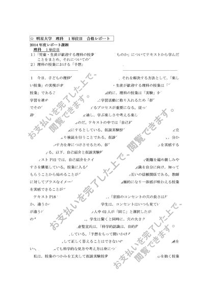 明星大学2013・2014年 理科 1単位目 合格レポート