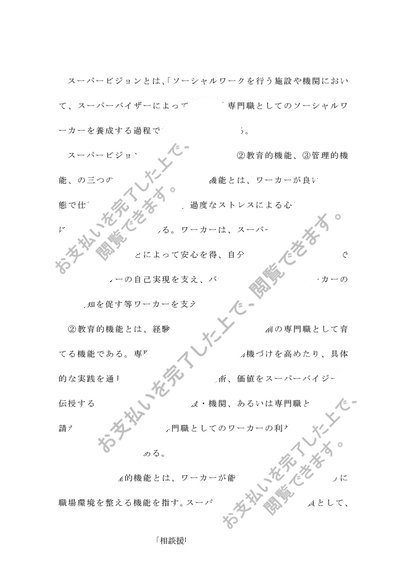 社会福祉士通信課程レポート;スーパービジョンの意義、目的、留意点、方法について述べなさい。(A評価/1534字)
