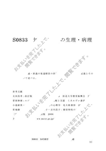 佛教大学 S0833 知的障害児の生理・病理 レポート A評価