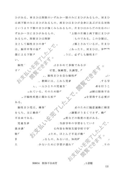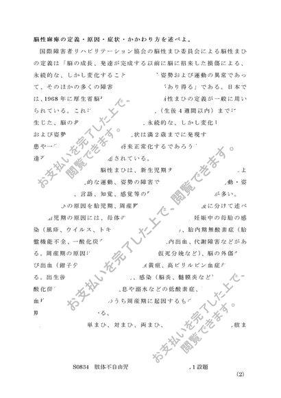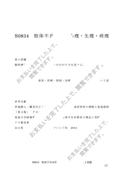 佛教大学 S0834 肢体不自由児の心理・生理・病理 レポート 第1設題&第2設題 A評価 2015年