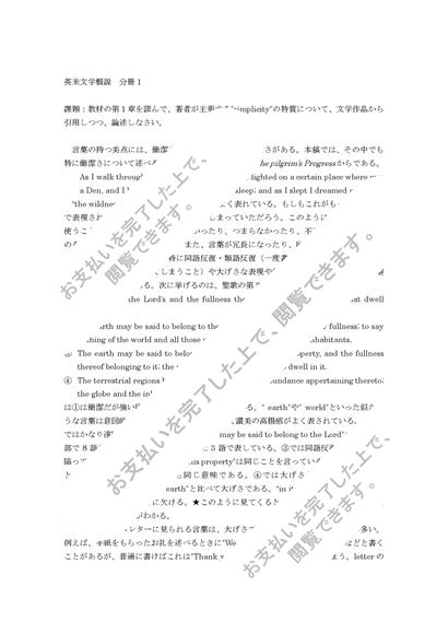 日大通信 英米文学概説 分冊1 S判定合格レポート