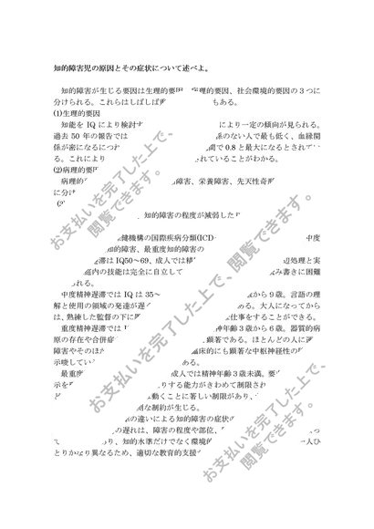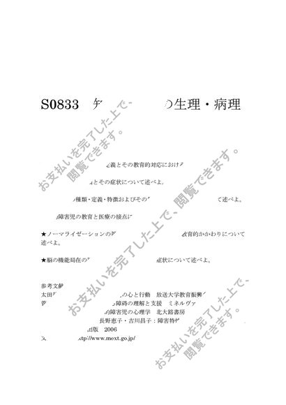 佛教大学 S0833 知的障害児の生理・病理 試験対策 6問 2015年