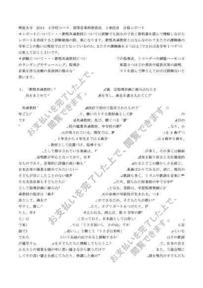 初等音楽科教育法 1単位目 明星大学、合格レポート、2022