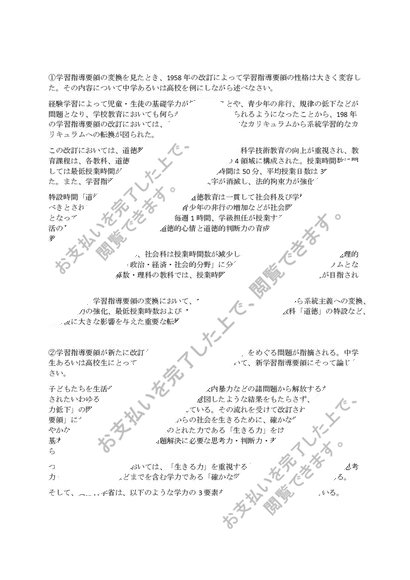 Z1114 Z1105【合格済みテスト解答】【一発合格】学校教育課程論 6題セット【科目最終試験】