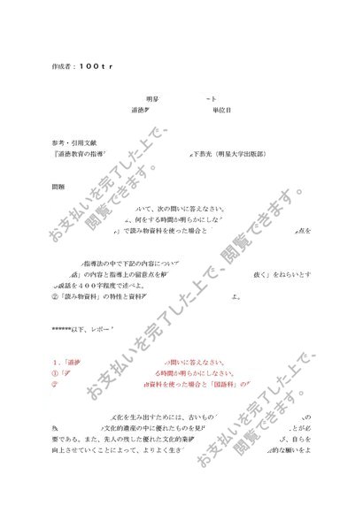 明星大学...道徳教育の指導法(中学校)2単位目合格レポート