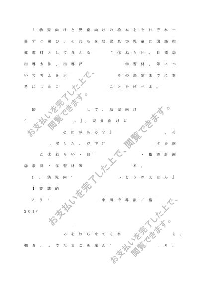 国語科指導法(書写を含む)【レポート】A判定 「幼児向けと児童向けの絵本をそれぞれ一冊ずつ選び、それらを幼児及び児童に