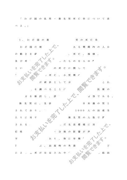 小児保健 設題①【レポート】A判定 「わが国の乳児・新生児死亡率について述べよ」