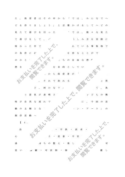 図画工作Ⅱ【レポート】A判定 「幼児の生き生きとした造形活動を促す、導入時の「言葉かけ」「環境設定」のあり方について」