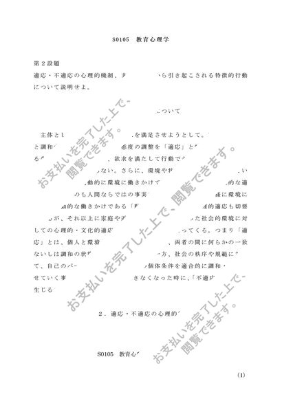 【佛教大学 通信課程 2015】 S0105教育心理学 第2設題