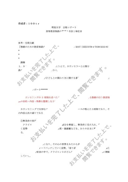 【2016】明星大学...初等教育相談の基礎と方法1単位目合格レポート