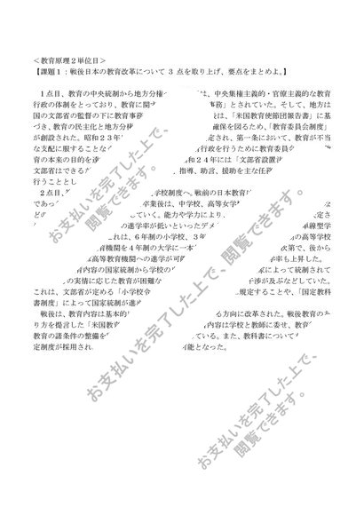 [PA1020] 教育原理1単位目、2単位目、合格レポート