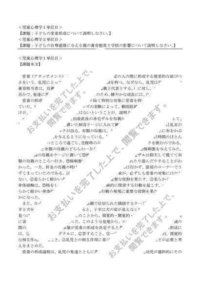 [PB2090] 児童心理学 1単位目、2単位目、合格レポート