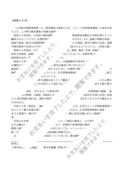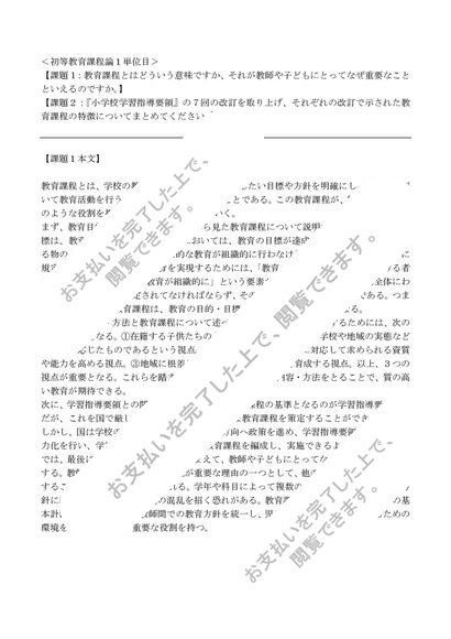 [PB2100] 初等教育課程論 1単位目、合格レポート