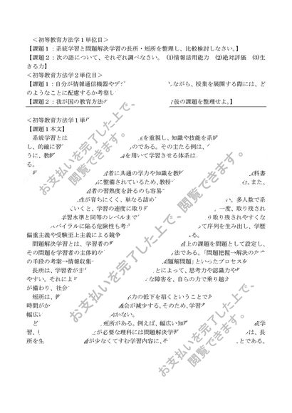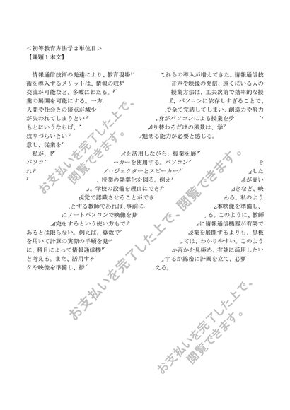 [PB2160] 初等教育方法学 1単位目、2単位目、合格レポート