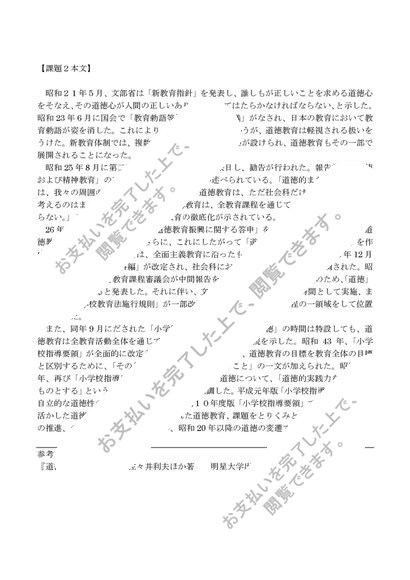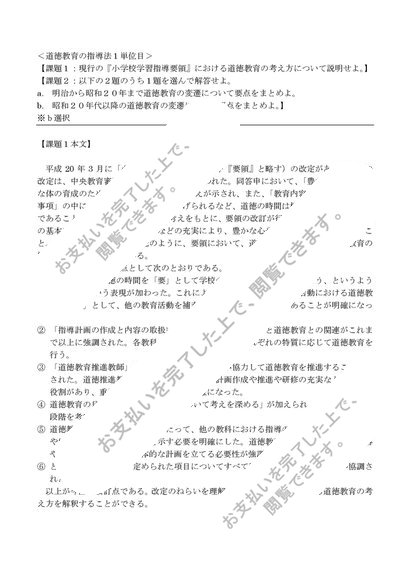 [PB3070] 道徳教育の指導法(小学校)1単位目、合格レポート