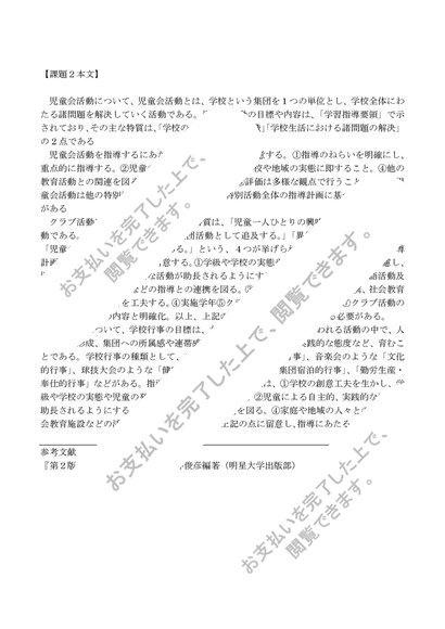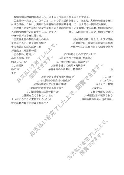 [PB3080] 特別活動の指導法(小学校)1単位目、2単位目、合格レポート